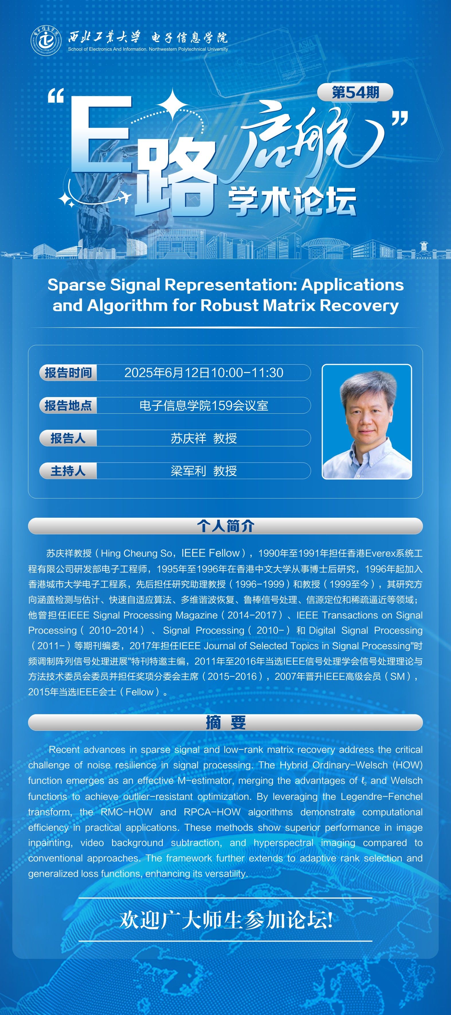 “E路启航”学术论坛第54期——Sparse Signal Representation: Applications and Algorithm for Robust Matrix Recovery