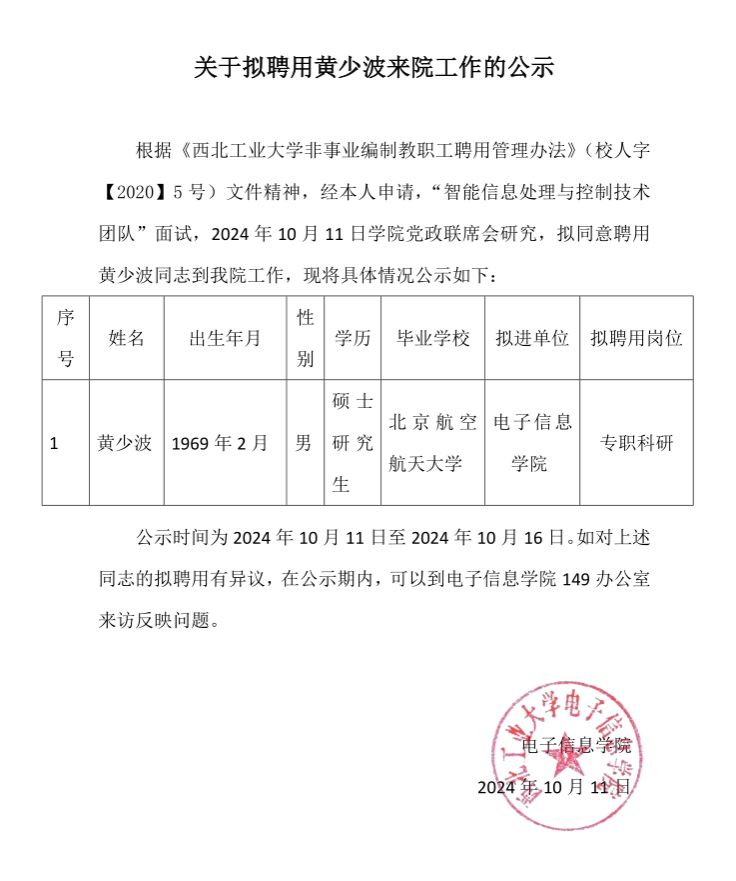关于拟聘用黄少波来院工作的公示
