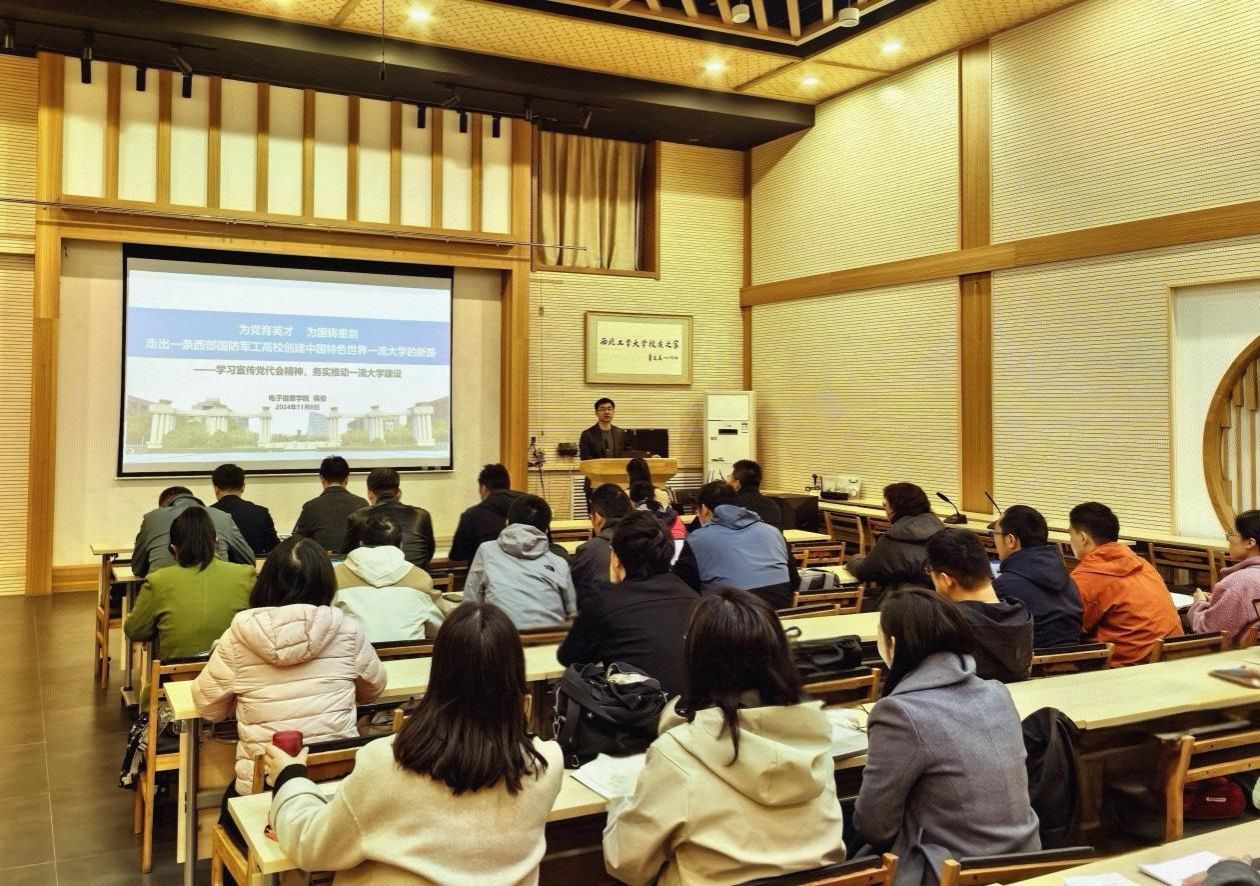 侯俊结合学习贯彻党的二十届三中全会精神、全国教育大会精神,聚焦“天下工大、世界三航”远景目标和主要内容、新“三步走”战略构想全面宣讲学校第十四次党代会的精神实质,并围绕学院目标责任制,详细解读学院关于贯彻落实学校党代会重点工作任务的举措。侯俊强调,全院教师要以学习宣传贯彻学校第十四次党代会精神为契机,深入理解学校改革发展的理念思路,推动“总师育人文化”融入学院人才培养工作走深走实,扎实推进党代会各项重点任务落实落细。