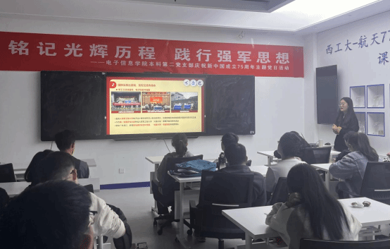 随后,支部党员、学生军星协会会员周师旭详细介绍了习近平强军思想的主要内容及精神内涵,使大家进一步加深了对国防军事的了解,深切感受到了国防军事对于民族富强的重要作用。同时,她还介绍了西北工业大学学生军星协会基本情况和大学生参军入伍等相关信息,帮助同学们更好地认识不同岗位的职责,进一步激发了大家的爱国热情和投身国防事业的责任感。