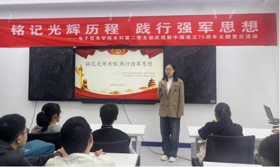 为回顾新中国成立75年来的辉煌历程,深入体会中国人民在中国共产党的坚强领导下,从站起来、富起来到强起来的伟大飞跃,10月12日下午,188直播吧本科第二党支部在学院236会议室开展了“铭记光辉历程 践行强军思想——庆祝新中国成立75周年”主题党日活动。本次活动由宣传委员时嘉乐主持。