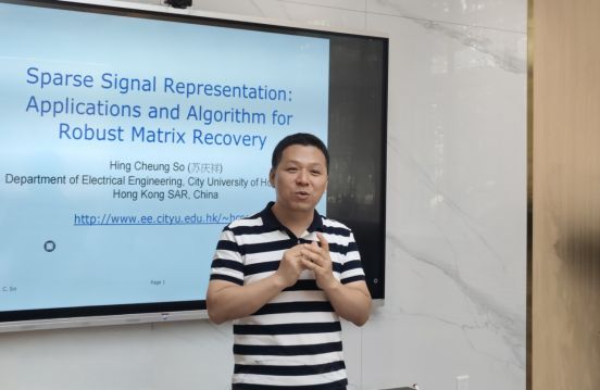 6月12日上午,188直播吧“E路启航”学术论坛第五十四期在159会议室成功举办。香港城市大学苏庆祥教授受邀作题为《Sparse Signal Representation: Applications and Algorithm for Robust Matrix Recovery》的报告。梁军利教授主持。